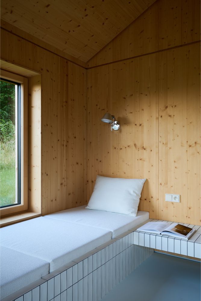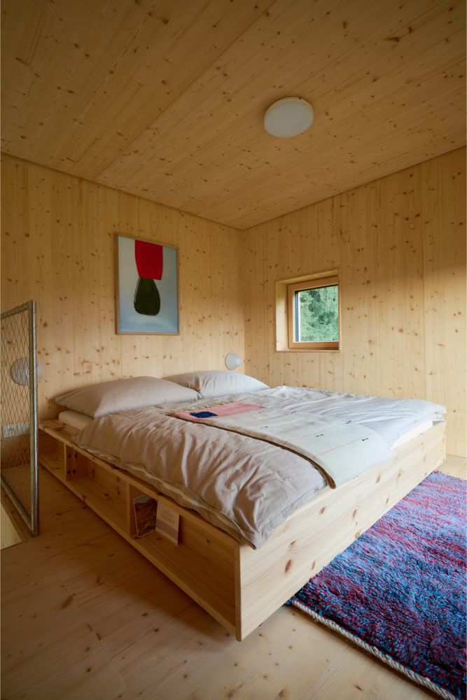 Objekt má zastavěnou plochu 28 m² a je koncipován jako víkendový úkryt pro soukromé i sdílené využití. V přízemí se nachází hlavní obytný prostor s integrovanou kuchyní, jídelním stolem, kamny a lenoškou u velkého okna. Dále koupelna s přiznanou utilitárností, kde se nerez, dlaždice a smrkové obklady potkávají v přesných liniích. Poval v podkroví slouží jako ložnice, otevřená do krovu. Je zde fixní okno sahající až k podlaze, které nabízí výhled do údolí. Přímo z postele je tak možné sledovat východ slunce nad krajinou Bílých Karpat.