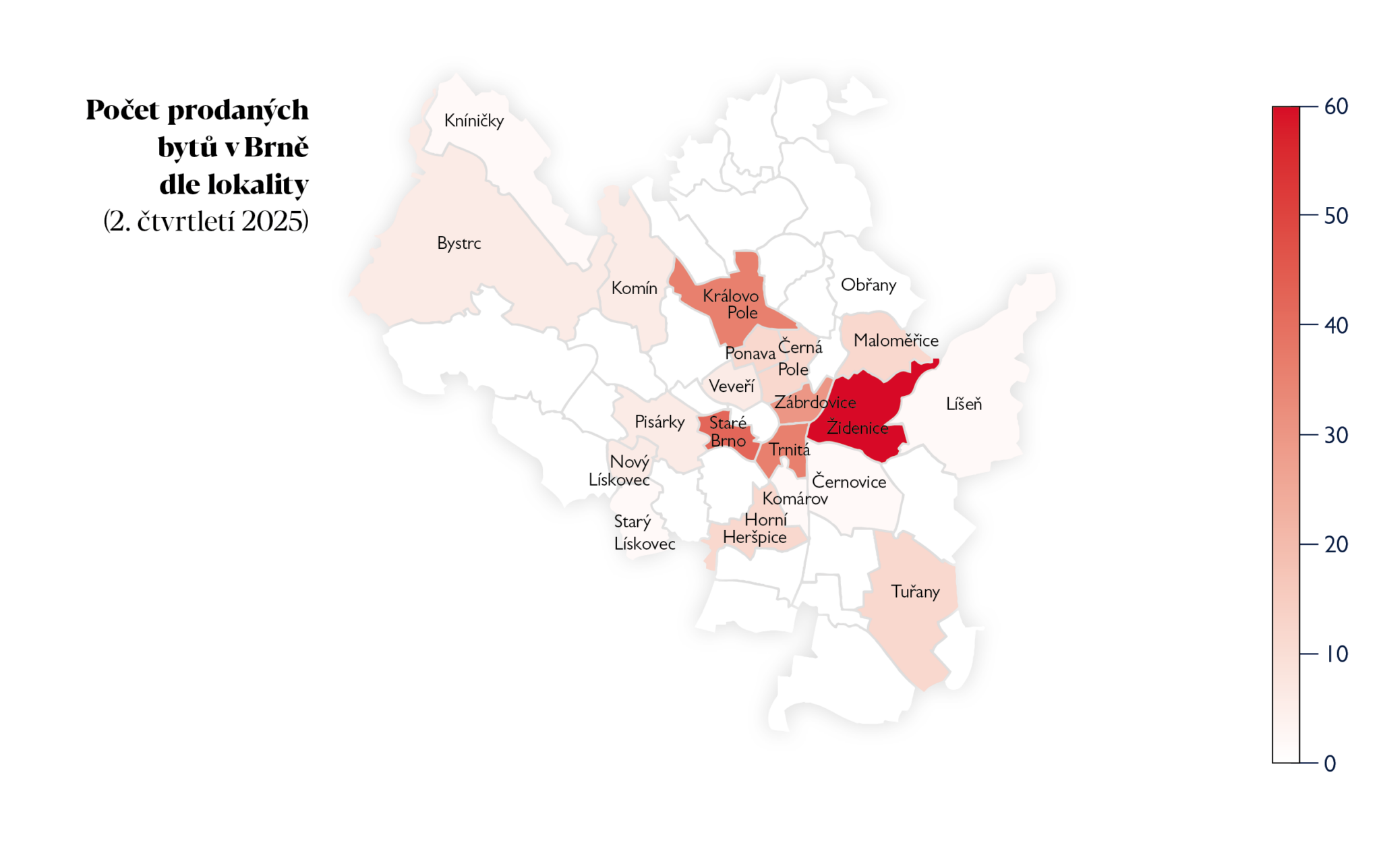Ve druhém čtvrtletí roku 2025 se v Brně prodalo 298 nových bytů, což představuje pokles o 38 procent oproti velmi silnému prvnímu kvartálu. I přesto celkový pololetní výsledek 777 prodaných bytů překonal loňské pololetí o bezmála 160 jednotek.