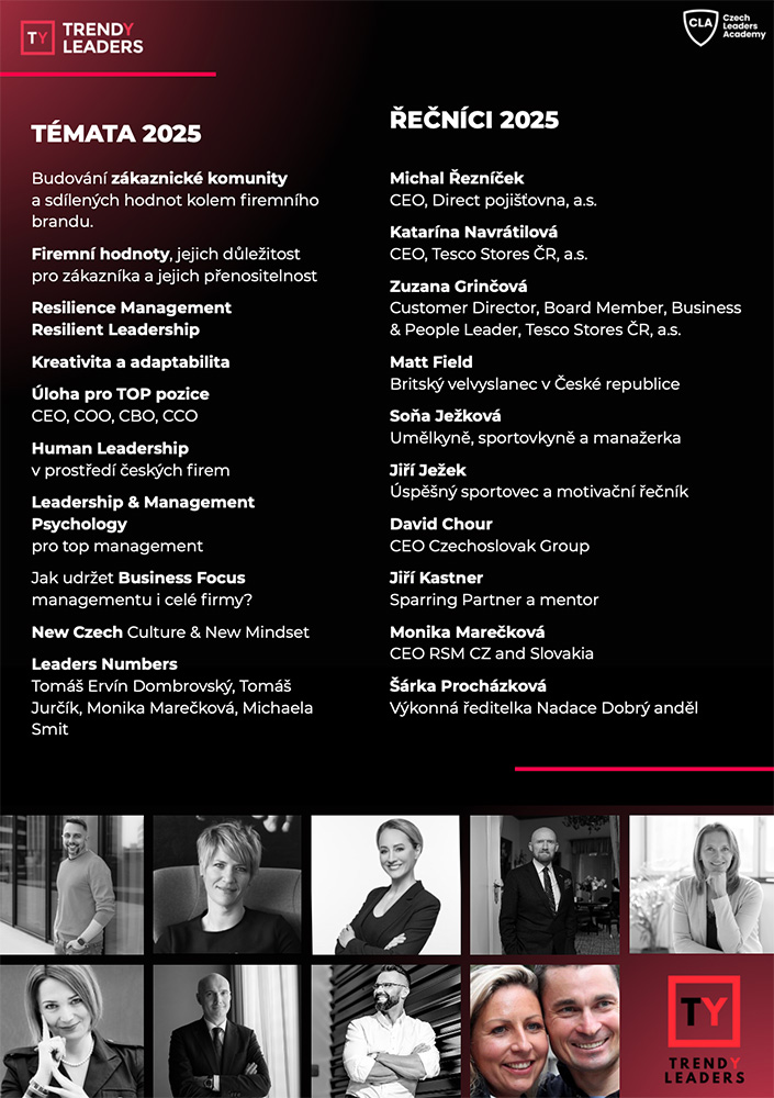 Právě kombinace otevřené diskuze, manažerské praxe a reálných příběhů dělá z Trendy Leaders nejvíce ceněné setkání lídrů současnosti.