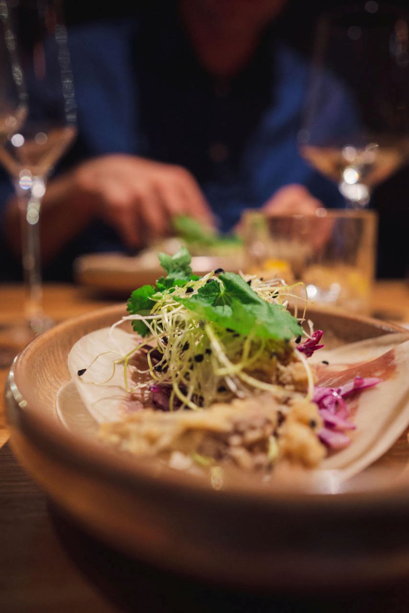Nabídka restaurace se za dobu její existence vlastně příliš nezměnila. I to má společné se Sansho, kde se oba šéfkuchaři mnohému naučili. Ta nejlepší jídla, která tu připravují, najdete na menu téměř od začátku. A když sezonně zmizí, zase se po čase vrátí. Jako třeba pomalu dušené jehněčí kolínko se skvělou, ne příliš pikantní curry omáčkou, v jejíž chuti i vůni snadno detekujete intenzivní kardamom. Ideální přílohou je jistě žlutá kokosová rýže nasi kuning, ale my jsme zvolili restovanou zeleninu, která byla dokonalou ukázkou toho, co v kuchyni umí. Křupavá zelenina byla výborně ochucená a obstála by i samostatně jako předkrm.