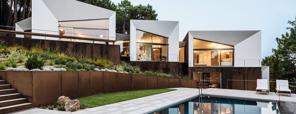 Neobvyklý rodinný dům doslova poskládal ze vzájemně propojených „boxů“ architekt José Gonzáles Gallegos v borovém lese na úpatí hory Abantos, jen hodinu jízdy na severozápad od Madridu. Členitý dům, rozdělený do několika pater, umožňuje i v suterénních místnostech kochat se exkluzivními výhledy. Hmota několika propojených budov působí kompaktněji a nedominuje krajině, protože je sotva vyšší než okolí, a i barevně s ním splývá (cortenová střecha). Koncept propojených …
