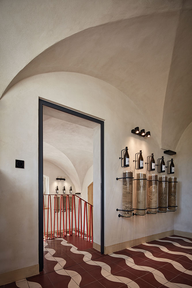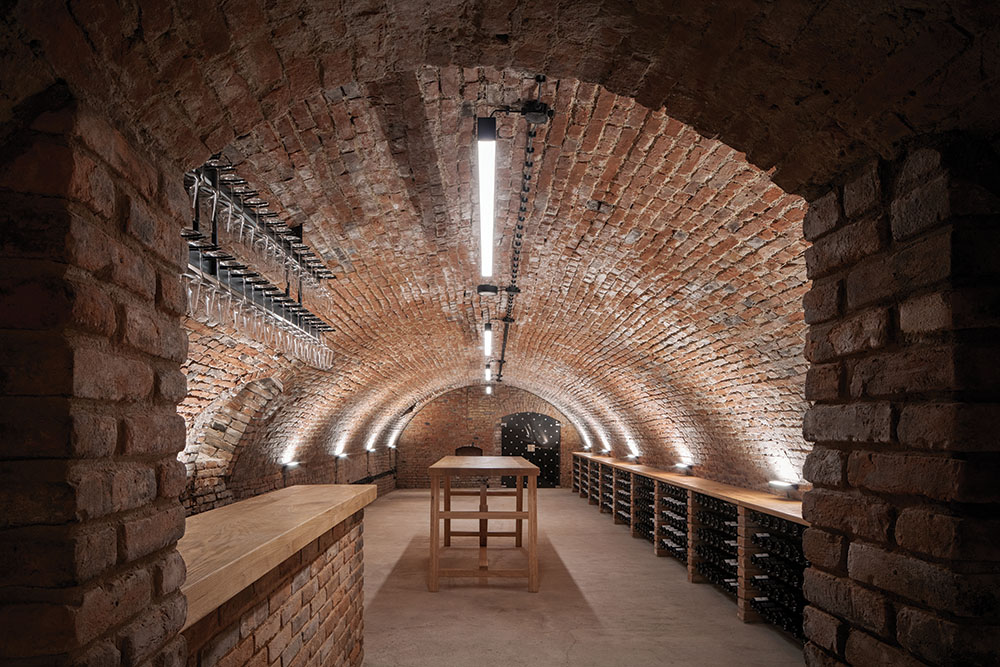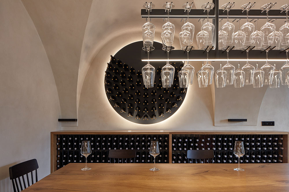„Winebar“ je umístěn v historické budově vinařství. Prostor přímo navazuje na rozsáhlé sklepy pod budovou. Místo klasického baru architekti navrhli doprostřed prostoru masivní degustační stůl, kde je možné stát okolo a debatovat nad vzorky. Výrazným motivem interiéru je cementová dlažba vínové barvy se vzorem vlnky navrženým přímo pro tento prostor. Kromě realizace „winebaru“ a dispozičních úprav, které si to vyžádalo, byl na staré budově změněn pouze nátěr do umírněného tónu s živou texturou.